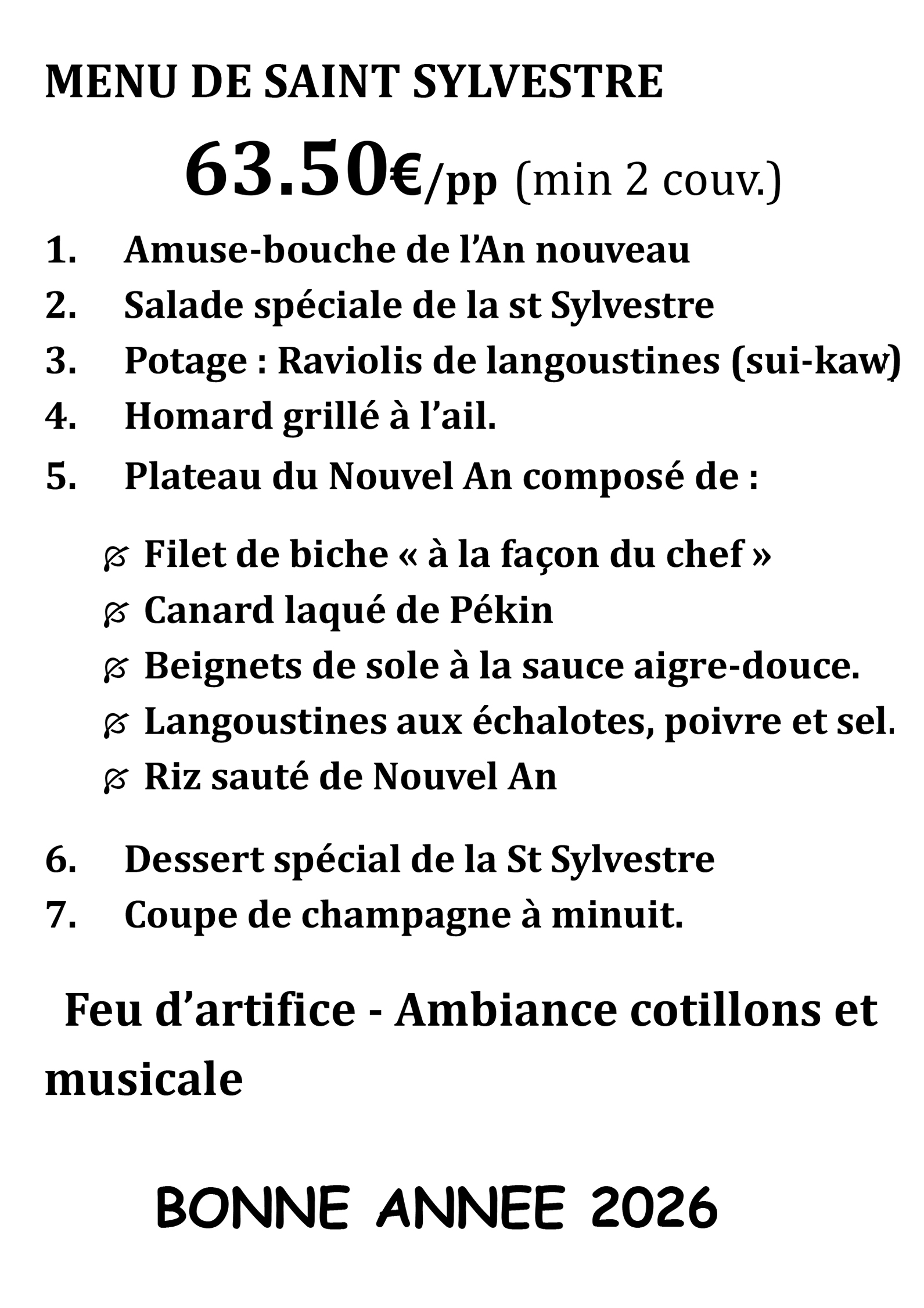 Nos menus fêtes de fin d'année  04 336 10 66 04 336 10 66 04 336 10 66 04 336 10 66 Jours et heures d’ouverture Heure d’ouvert 12:00 – 14:3018:00–22:30 FermetureMardi Nous contacter Formulaire de contact Nous répondons à votre demande dans les plus brefs délais! Prénom Nom Adresse e-mail Téléphone Message Envoi