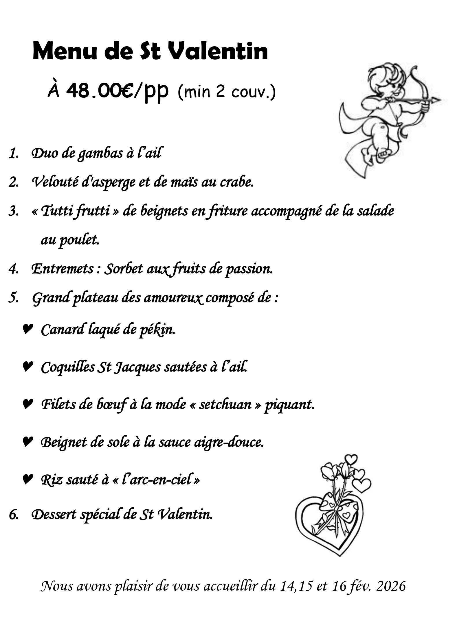 Notre Menu Saint-valentin 04 336 10 66 04 336 10 66 Jours et heures d’ouverture Heure d’ouvert 12:00 – 14:3018:00–22:30 FermetureMardi Nous contacter Formulaire de contact Nous répondons à votre demande dans les plus brefs délais! Prénom Nom Adresse e-mail Téléphone Message Envoi